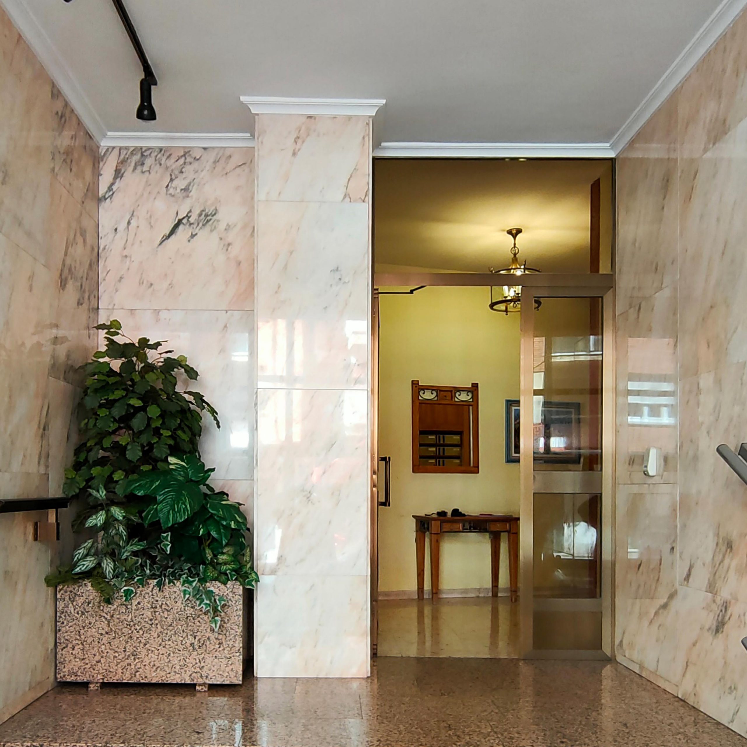 This design stands out for its luminosity, from the entrance to the building, keeping the marble at the entrance, well preserved, and with indirect perimeter lighting that gives it a modern touch from the moment you enter the building.